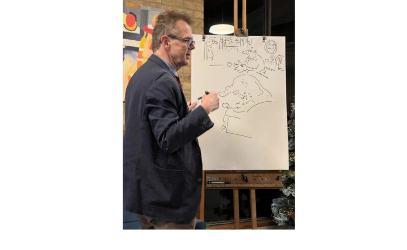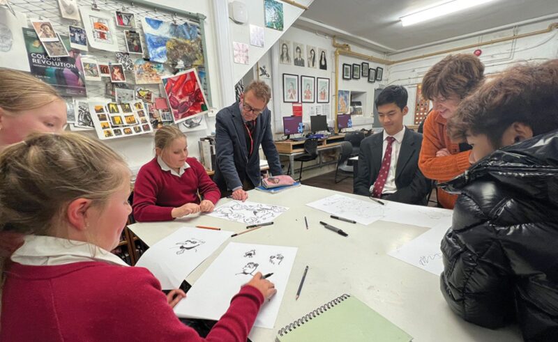 Jonathan (the current pocket cartoonist for the Daily Mail, has worked for The Times, Punch, The Observer, The Guardian, Private Eye and The Tablet), led an inspiring masterclass for our art students, sharing insights into his technique and career, and offering thoughtful, personalised feedback to each pupil.