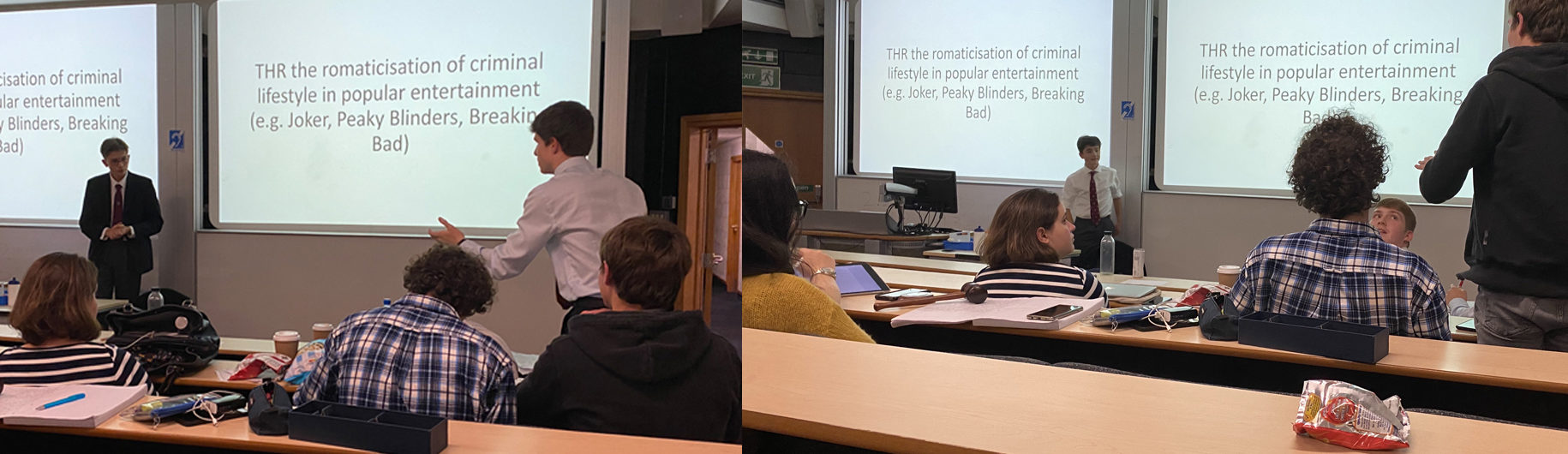 The motion ‘This house regrets the romanticisation of criminal lifestyles in popular entertainment’, e.g. Joker, Peaky Blinders or Breaking Bad, was quite a complex topic to argue on. Despite coming third in the first round as novices, the boys’ performances were so notable that they were quickly moved into the seniors category. As Member of Government and Whip, they presented sophisticated and measured efforts, knocking down their opponents like skittles.