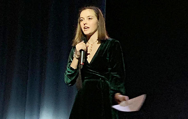 The Show opened with a short and moving film about the invisibility of girls who are being trafficked. The theme – ‘from slavery to freedom’ – was clearly expressed in many of the individual lines and, particularly, via an incredibly emotional dance choreographed by Downside’s dance teacher Sherralyne Mortimer and performed by Downside pupils. The routine moved many of the audience to tears as it portrayed a group of young women finding release and freedom from the sex slave trade. One dancer commented that “doing it was out of my comfort zone, but it felt great using the dance to raise money for the charity.”
