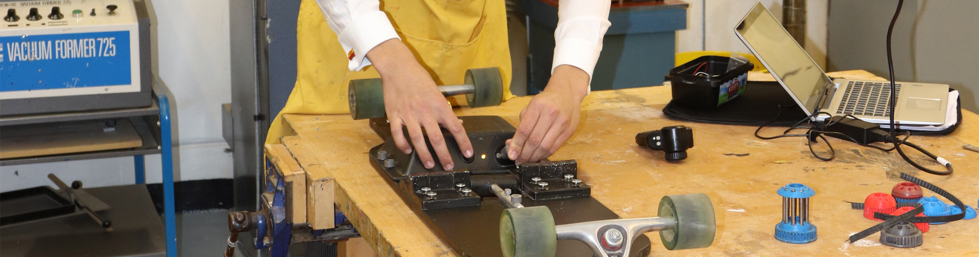 Fifth Form Design & Technology pupil, Teddy, is just one of our many young inventors. He has designed and built a Bluetooth-activated motorised longboard for his GCSE Design and Technology course – perfect for getting around the School grounds. He has also made the board foldable, reducing the amount of storage space it takes up, thus making it ideal for places such as a university residence.