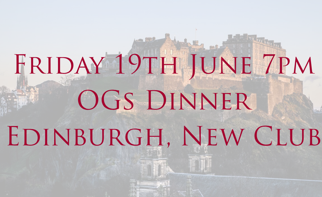 Friday 19th June 7pm- Edinburgh OGs Dinner, New Club