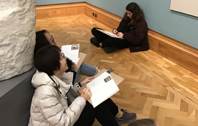 The students learned to look at paintings and analyse them both through written appraisal and sketches. They had an excellent guide who explained the ideas behind the artists’ work, which really broadened pupils’ perception of what is art. In the afternoon the Fourth Form spent time in the natural history section of the Museum collecting visual images for their current project ‘Organic’. We managed to fit a great deal into the day and the students have returned to School enriched with ideas which we will share with you as the term progresses on our soon-to-be-launched Students Monthly Art Gallery.