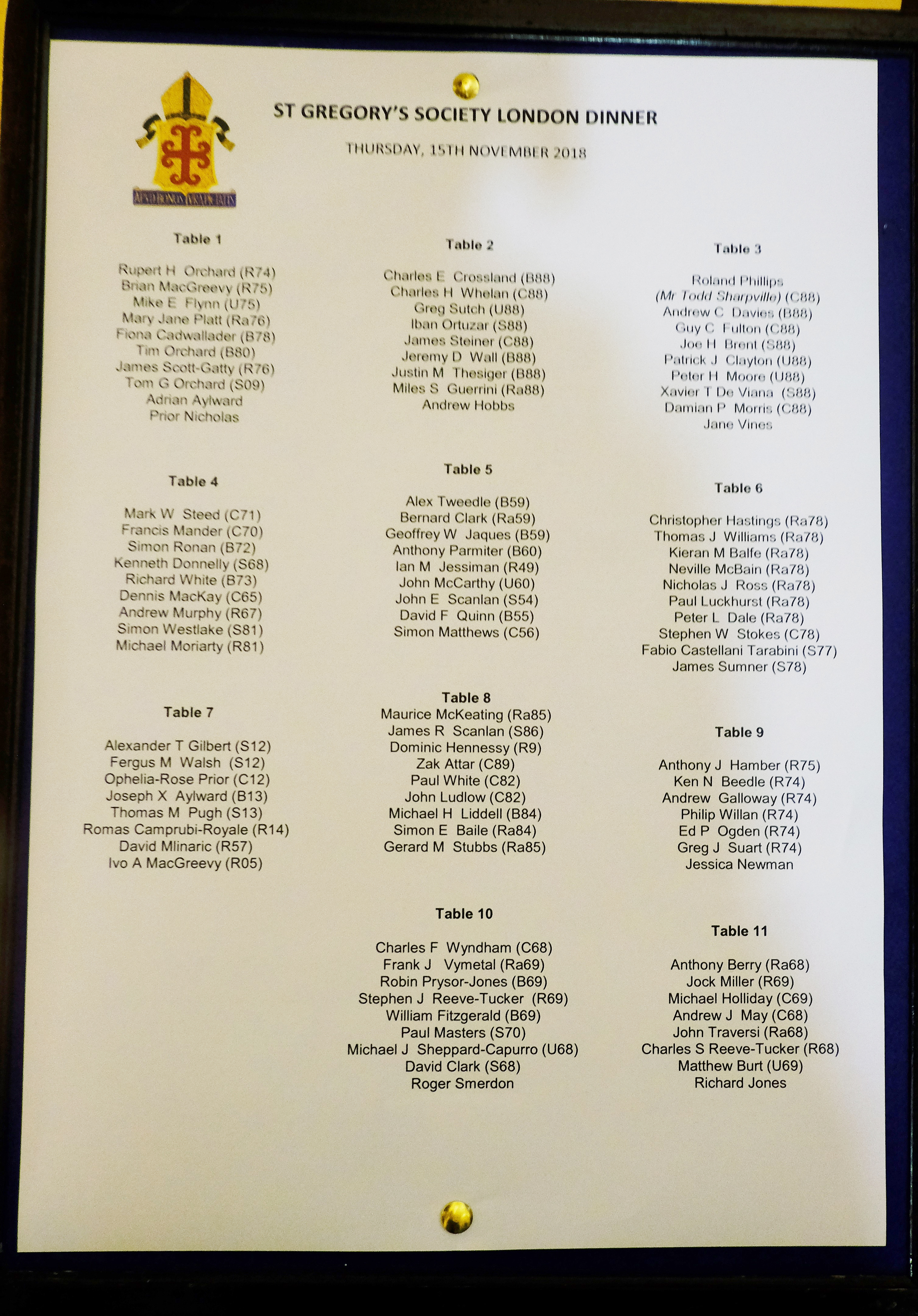 Special thanks go to the unbeaten rugby team from 68 as well as reunions for 1978 leavers, 1988 leavers and the Ramsay restoration group. It was a pleasure to have Prior Nicholas join us alongside the Head Master, Andrew Hobbs, Chairman of Governors, Adrian Aylward and of course, the President of St Gregory’s Society, Rupert Orchard (R74), who all gave speeches after dinner. Zak Attar (C89) even managed to rally everyone together for the School song to round off a splendid evening.