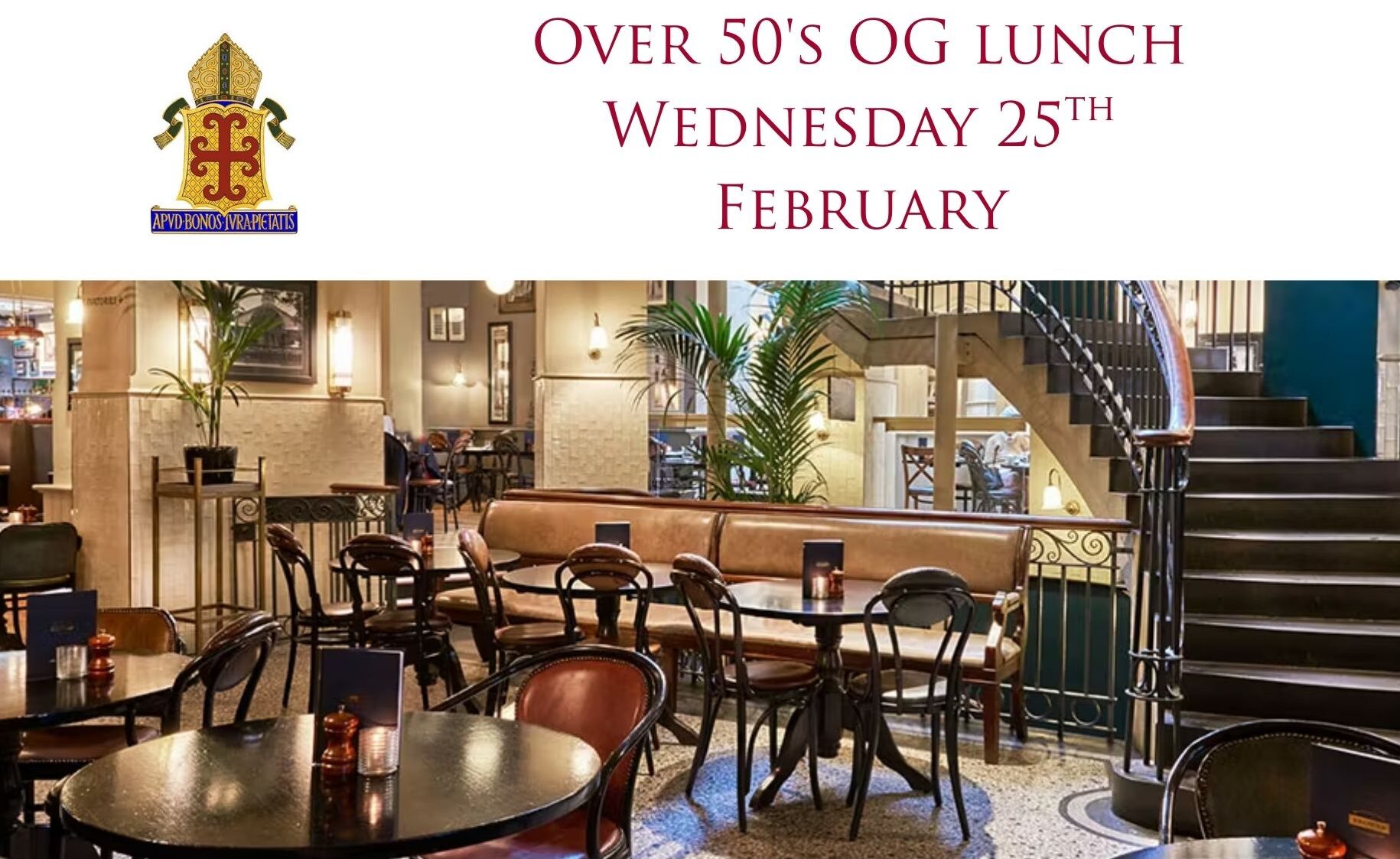 Over 50s Old Gregorians are warmly invited to a relaxed and enjoyable lunch at Brown’s, Covent Garden. Join us for good food, great company, and the chance to reconnect.