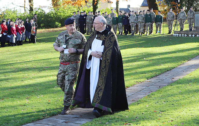 The Last Post was played by one of our talented cadets and we then observed two minutes silence. This tradition was as a result of a suggestion from James Percy Fitzpatrick, an Old Gregorian, for a moment of silence to be observed annually on 11 November, in honour of the dead of World War I, was forwarded to George V on 27 October 1919. This was adopted on 7th November 1919 and proclaimed “that at the hour when the Armistice came into force, the 11th hour of the 11th day of the 11th month, there may be for the brief space of two minutes a complete suspension of all our normal activities … so that in perfect stillness, the thoughts of everyone may be concentrated on reverent remembrance of the glorious dead.”