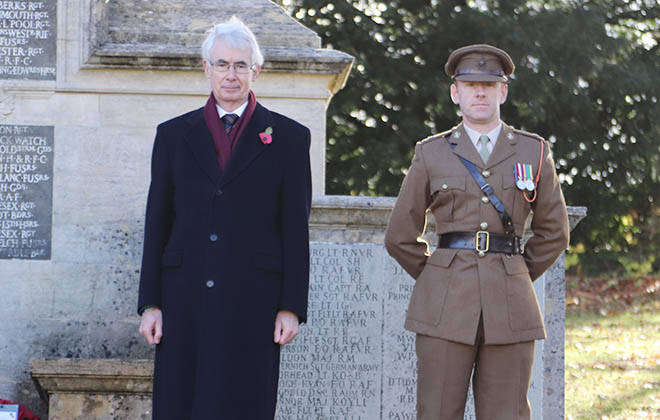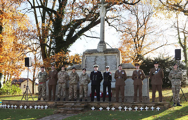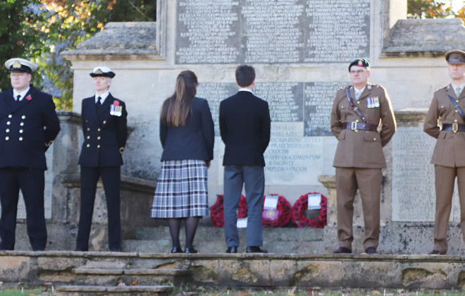 The President of St Gregorys Society, Rupert Orchard (R74), laid a wreath on behalf of all OGs, while Andrew Hobbs laid a wreath on behalf of the School. While commemorative crosses were placed by pupils at the foot of the Memorial, the biographies of 25 Old Gregorians who fell in 1918 (and early 1919) were read out.