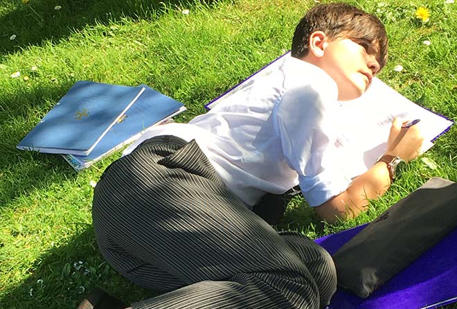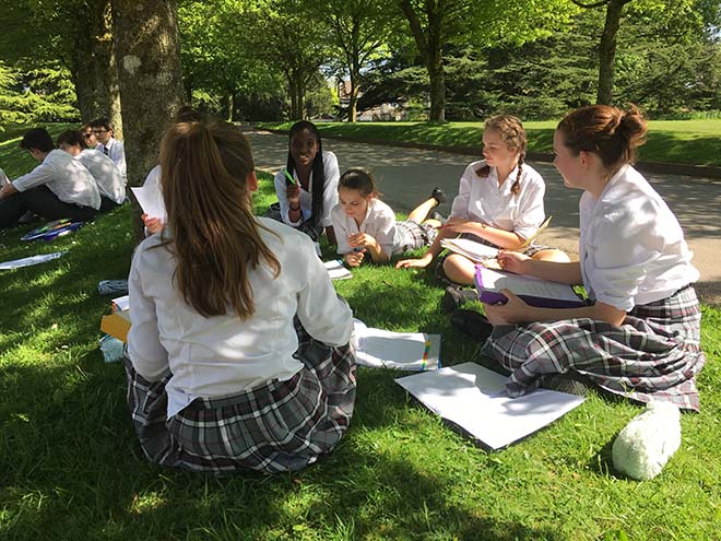 The pupils were studying Shakespeare’s Sonnet 18 ‘Shall I compare thee to a summer’s day?’, the warm weather certainly helped in appreciating the beauty of the sonnet!