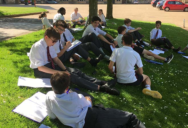 Pupils from the Third Form enjoyed taking their lesson outside on Bank Holiday Monday.