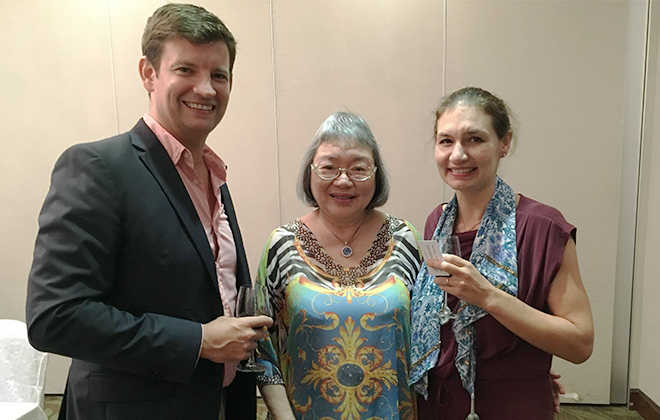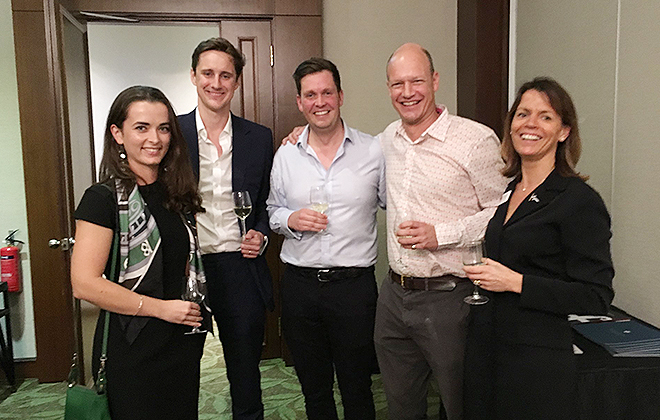 Thanks to John Bittleston (S49) and Eliza Quark for organising the Singapore Dinner that took place on 23rd November. Jane Vines and Issy Hartnell from Downside joined Simon Hartog (C72), Ed Cottrell (R87), Amy Wright (S95) & Jerome Wright, Henry Hudson Evans (R06), Marius Graham-Watson (S04), Martin Lane (R73) & Tu Dinh and Francesca Triggs (C13).