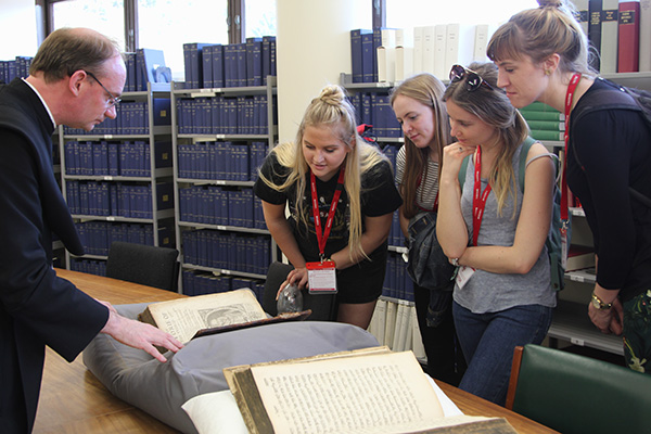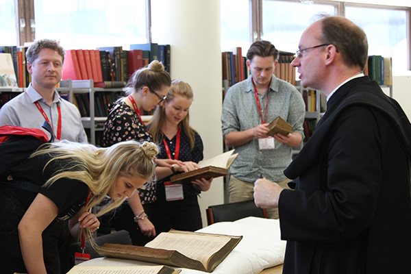 The Monastery Library welcomed an enthusiastic group of religion PGCE students and theology students from Bristol University recently to look at some of our extensive collections.