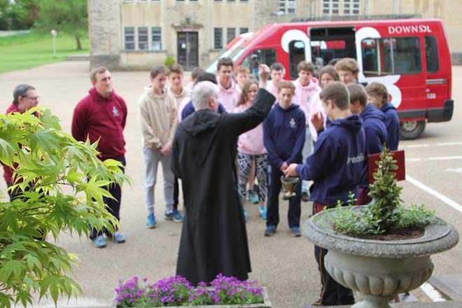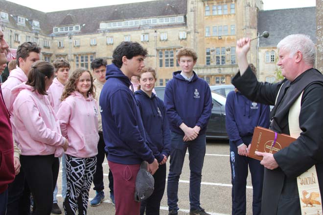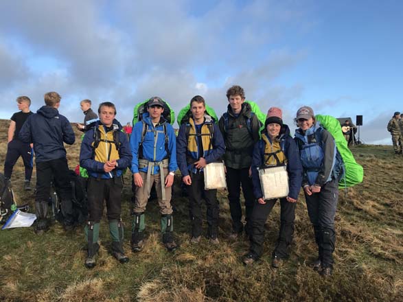 After a blessing from Fr Boniface upon departure, the pupils joined other teams at Okehampton Army Camp to attend a safety briefing and undergo a 100% random kit check (10% of all teams were selected, including one of our 35-Mile teams), as well as planning their routes; this included avoiding rare nesting bird areas and only crossing rivers at specific locations on the Moor.