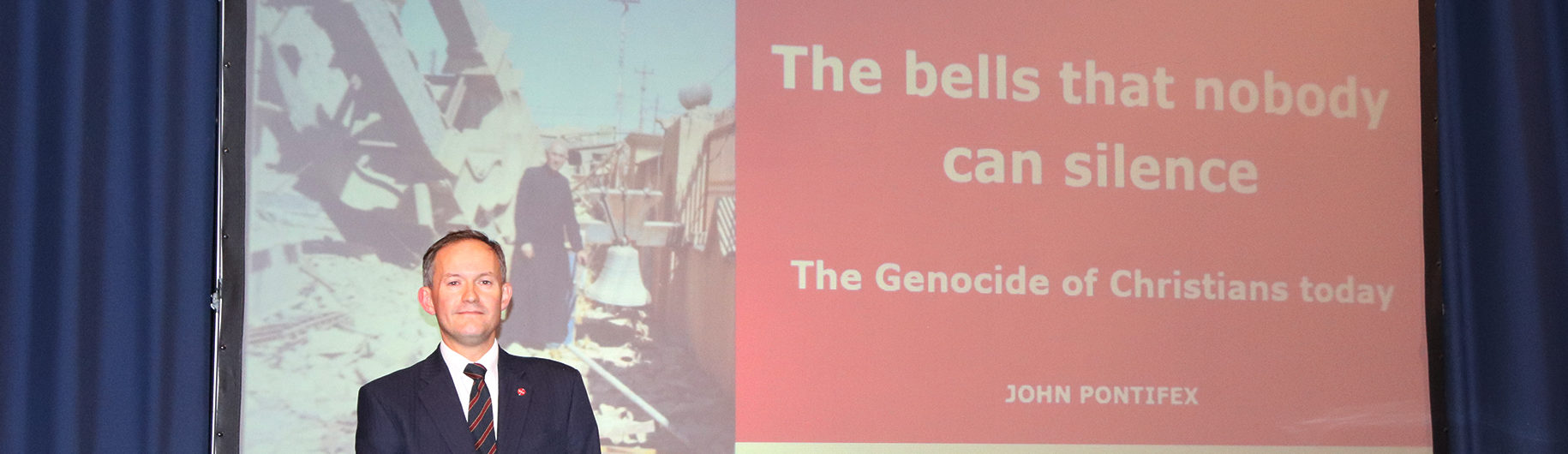 Last Wednesday Old Gregorian John Pontifex (U93) provided an impactful and inspiring talk to the Sixth Form in the first of this academic year’s Sixth Form Lecture Series, entitled ‘The Bells That Nobody Can Silence: The Genocide of Christians Today’.